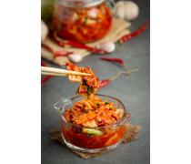 El kimchi, va més enllà de ser un plat coreà catalogat com a patrimoni immaterial de la humanitat, és una tècnica de fermentació ancestral usada des de fa milers d’anys com a mètode de conservació. La verdura fermentada més usada és la col, però de fet es pot fermentar qualsevol vegetal i fins i tot fer les barreges d’hortalisses que més agradin amb espècies al gust. Existeixen unes 200 varietats de kimchi, però la base seran les verdures a fermentar, la proporció correcta de sal segons pes de les verdures usades i una barreja d’aigua amb farina d’arròs. També es pot afegir sucre i utilitzar altres condiments per fer-los més peculiars com per exemple afegir all, gingebre o pebre vermell o fer un preparat de salsa picant i deixar anar la vostra imaginació i creativitat. Segons si les verdures es tallen més grosses o més petites es podrà mossegar o utilitzar com a salsa. El resultat final d’aquest lactoferment de verdures és un aliment d’allò més saludable i saciant, que a més d’aportar fibra, vitamines i minerals a la nostra dieta, enriquirà la microbiota intestinal. El seu sabor varia entre amarg i picant segons les verdures fermentades i el temps de fermentació: la col l’hi dona un sabor més fort, els ravenets més especiats, el cogombre més refrescant i l’all un sabor més profund.